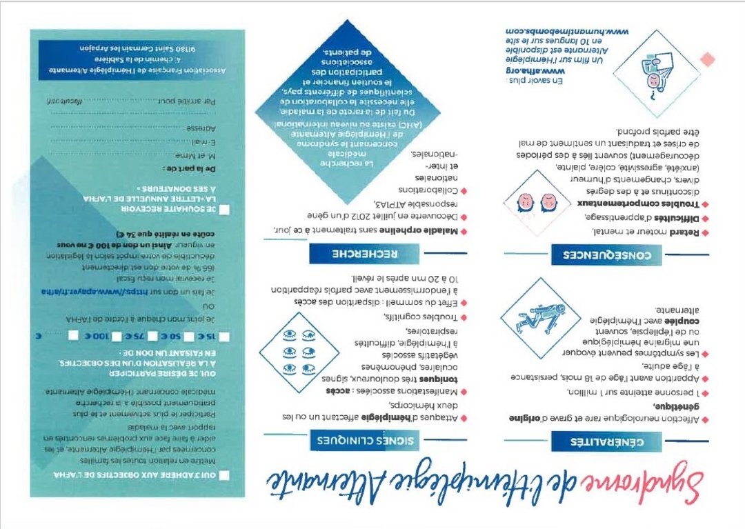 Le syndrome de l'hémiplégie alternante est une maladie rare. A Pouilly, une famille est directement concernée. Vous pouvez choisir de lui apporter votre soutien, ainsi qu'à toutes les personnes atteintes, en vous informant sur cette pathologie et en faisant un don. https://www.afha.org/