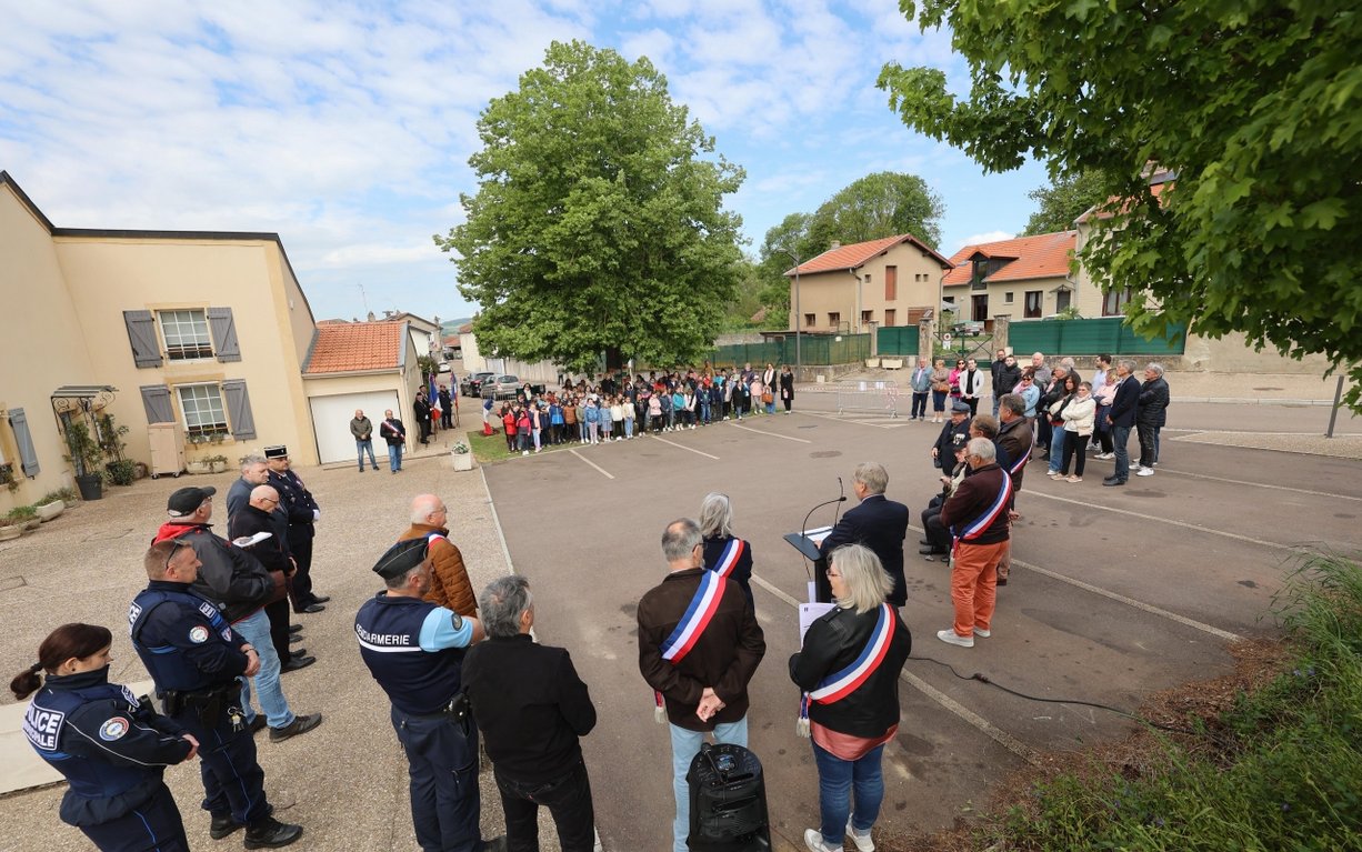 Un merci particulier aux enfants des classes de CM1 et CM2 de l'école Marc CHAGALL et à leurs enseignants pour les extraits de lettres de poilus dont ils ont donné lecture et pour leurs magnifiques illustrations mais également aux apprentis et aux enseignants de l'UIMM de YUTZ qui ont créé la stèle commémorative.